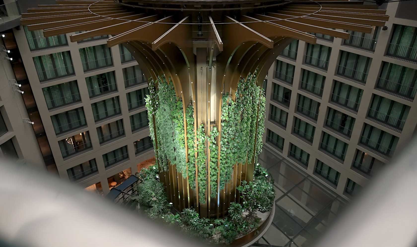 Statt einem Aquarium steht jetzt eine Baumskulptur im Raddisson-Hotel Berlin Mitte.